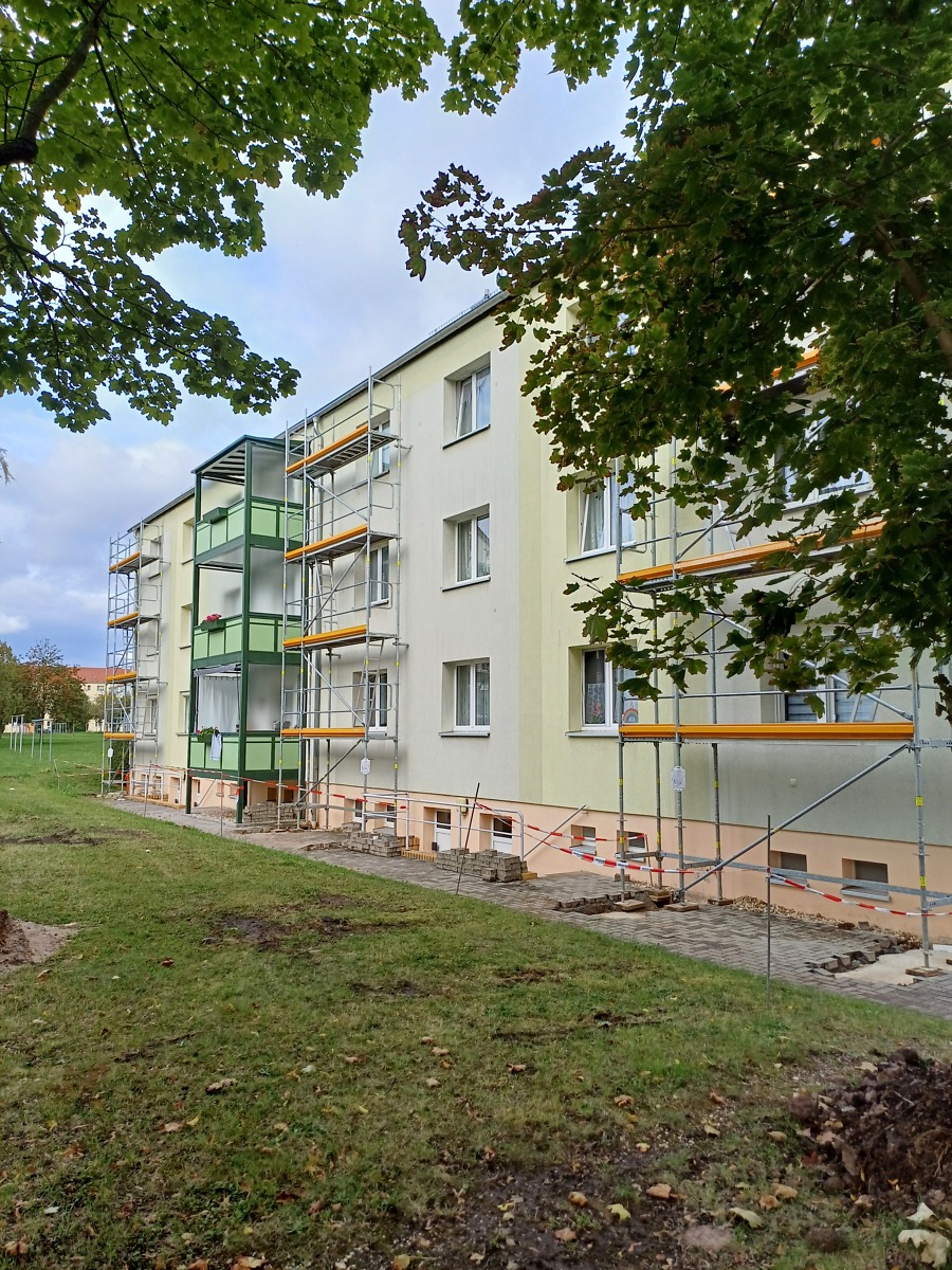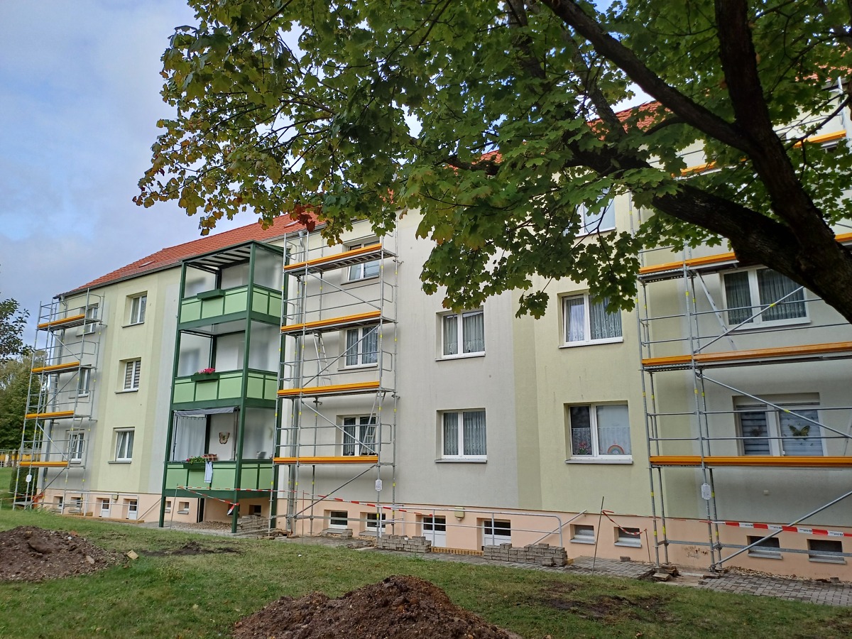 Unter der Bauleitung des IB M.Frommhold sind die Fa. Tischlerei Mahner Kitzscher für die Bauarbeiten und die Fa. Duralin Stollberg/Erzgebirge für die Balkonmontagen vertraglich gebunden.