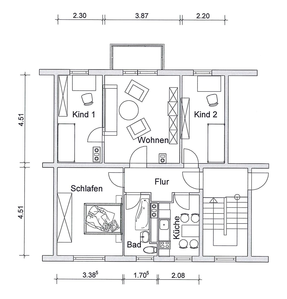 Einkaufsmöglichkeiten sind ebenfalls in der Nähe (Netto-Markt, Bäcker, Getränkemarkt, Friseur etc.).